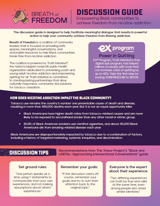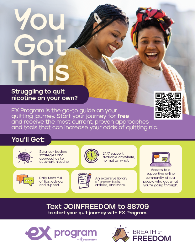 Breath of Freedom – part of the Culture + Cessation Collective – is a coalition of community leaders that are reclaiming the narrative around tobacco use in Black communities, equipping Black individuals with the tools, education, and communal support needed to quit. Tobacco companies have long exploited Black communities through the predatory marketing of menthol cigarettes, which has contributed to higher use and more tobacco-related disease. This coalition is not just about cessation—it’s about reclaiming health as a form of liberation.