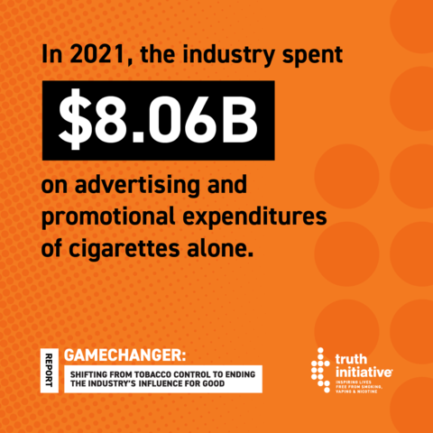 Further, protests and false promises to the contrary, the tobacco industry is not abandoning combustible cigarettes in any way. Cigarettes remain by far the products with the largest market share (more than 80% for the Big Tobacco companies in the U.S.) and there are still 249 billion cigarettes sold each year in the U.S. In 2021, the industry spent $8.06 billion on advertising and promotional expenditures for cigarettes alone. The industry continues to aggressively fight any policies that would reduce combustible tobacco use – actions contrary to their many advertisements espousing that they are working toward change and have become part of the solution. These industry confusion and obfuscation strategies distract important attention from the goals of moving society away from tobacco and nicotine use in an effort to change the public narrative to embrace newer forms of tobacco and nicotine addiction as a more “healthy” and socially acceptable form of consumption with little to no harms.