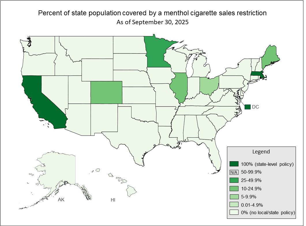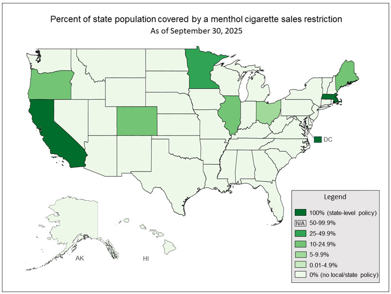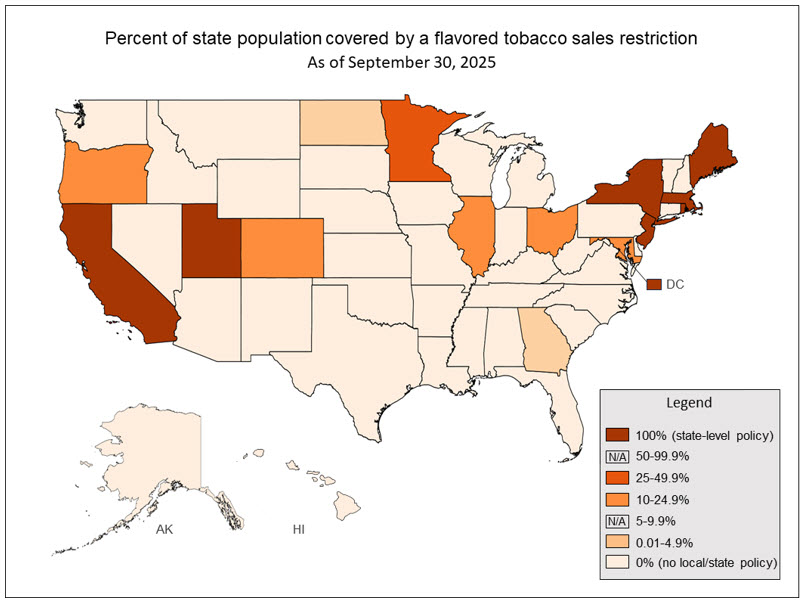 Sales restrictions on all flavored tobacco products, including all types of menthol products, are gaining momentum at the local and state level. As of September 30, 2025, 422 jurisdictions and three Native American tribes have placed some type of restriction on the sale of flavored tobacco products, and of those, 162 have fully comprehensive policies that prohibit sales of all types of flavors across all products, including menthol/mint/wintergreen flavors that are sometimes exempted from flavor policies, at all retailers.