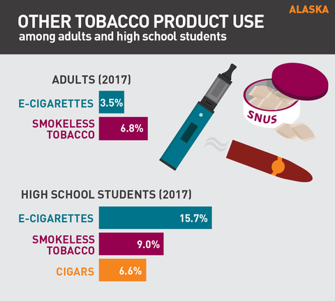 - In 2017, 15.7% of high school students in Alaska used electronic vapor products on at least one day in the past 30 days. Nationally, the rate was 13.2%.2