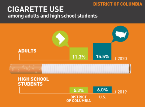 - In 2019, 5.3% of high school students in the District of Columbia smoked cigarettes on at least one day in the past 30 days. Nationally, the rate was 6.0%.2