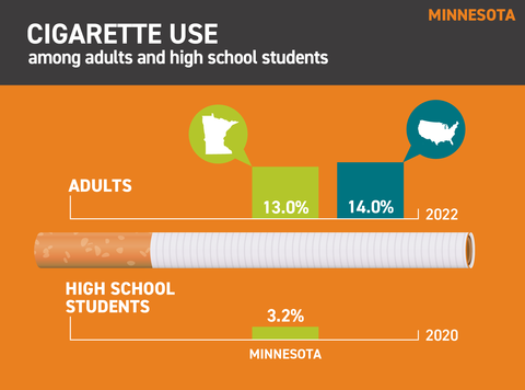 - In 2022, 13.0% of adults in Minnesota smoked. Nationally, adult smoking prevalence was 14.0%.1