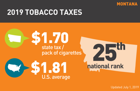 - Montana is ranked 25th in the U.S. for its cigarette tax of $1.70 per pack (enacted January 2005), compared to the national average of $1.81. (The District of Columbia has the highest tax at $4.50 and Missouri has the lowest at 17 cents.)6-8