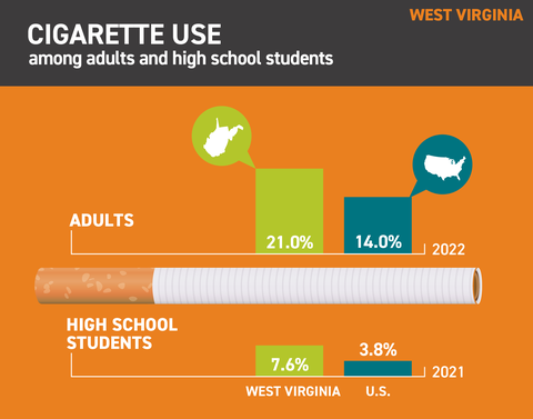 - In 2021, 7.6% of high school students in West Virginia smoked cigarettes on at least one day in the past 30 days. Nationally, smoking prevalence among high school students was 3.8%.2