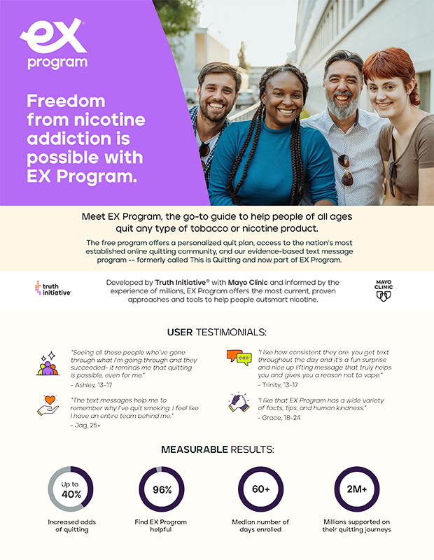 Quitting is hard, but with the right support, anyone can break free from nicotine addiction – and they don’t have to go it alone. That’s the message behind Outsmart Nicotine, a national campaign from Truth Initiative that empowers young people to break the cycle of nicotine addiction for good with an enhanced EX Program.